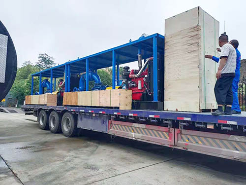 我司柴油机卧式多级离心泵组生产完成装车发货中石油某建设工程!