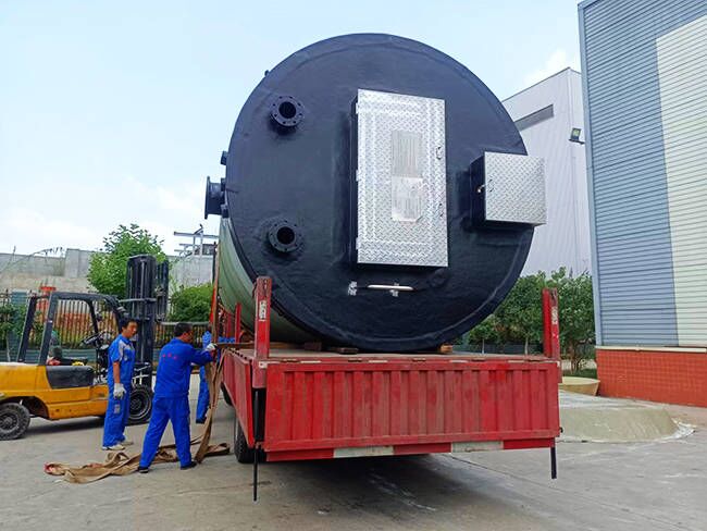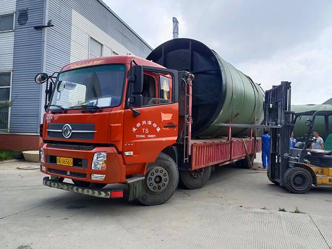 我司用户定制玻璃钢一体化预制泵站生产完成装车发货现场,应用盐亭污水收集提升项目!