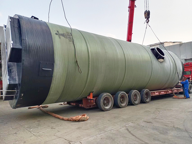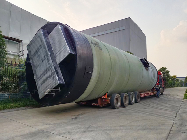我司大型玻璃钢一体化泵站发货应用遂宁涪江建设工程项目雨污水提升!
